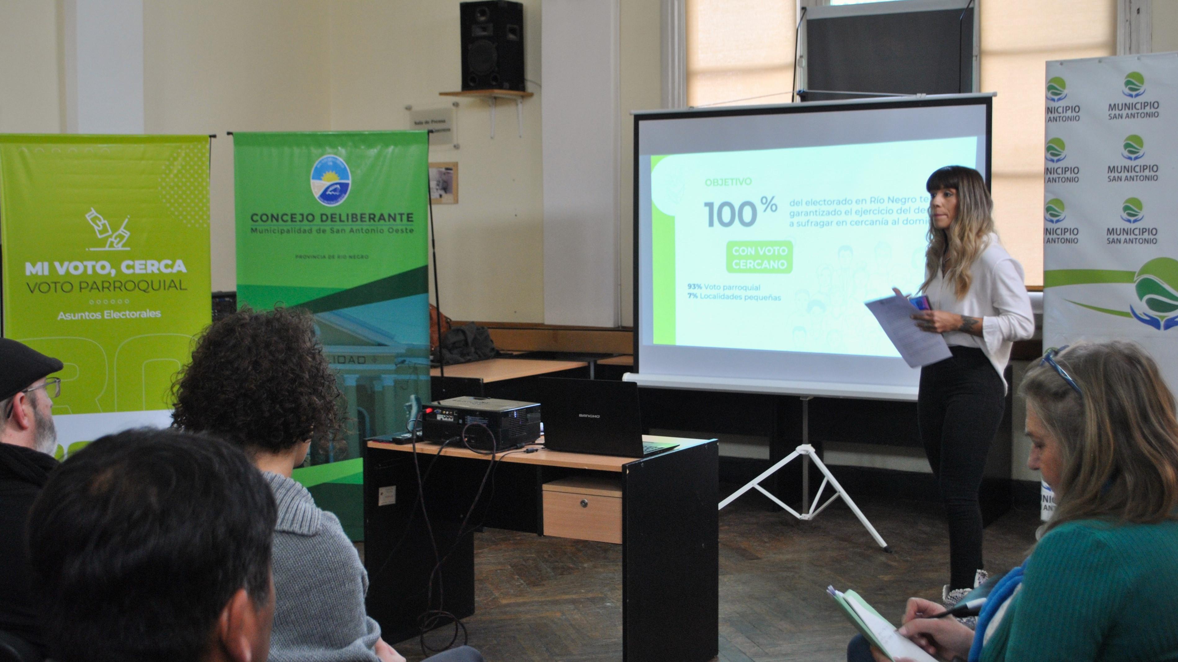 El Gobierno Provincial, junto a la Fundación de la Universidad Nacional del Comahue (FUNYDER), presentó ante el Concejo Deliberante de San Antonio Oeste los avances del programa "Mi voto, Cerca", que permitirá a las y los vecinos ejercer el derecho al voto en el establecimiento educativo más cercano a su domicilio a partir de los comicios de 2023.